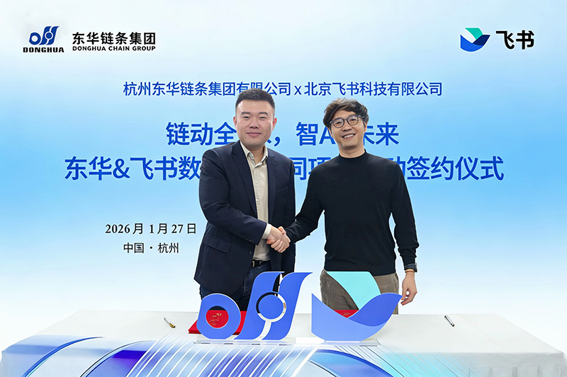 1月27日,东华链条& 飞书数字化协同项目在东华总部举行启动仪式。东华链条集团董事长宣成、高管团队、信息化团队与飞书华东&华中区总经理姚翔等共同出席了本次仪式。